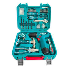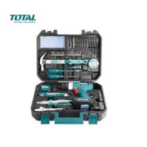 KIT TALADRO ATORNILLADOR CON HERRAMIENTAS Y ACCSESORIOS 12 VOL – 127 PIEZAS. TOTAL MAQUINAS