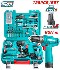 KIT TALADRO ATORNILLADOR 12 VOL CON HERRAMIENTAS Y ACCSESORIOS – 129 PIEZAS.