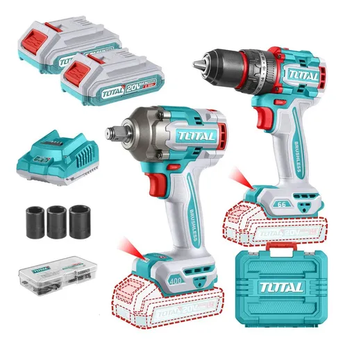 COMBO TALADRO PERCUTOR 66 NM + LLAVE DE IMPACTO 400 NM – CON MALETIN CARGADOR Y 2 BATERIAS DE 2 AMP Y ACCESORIOS