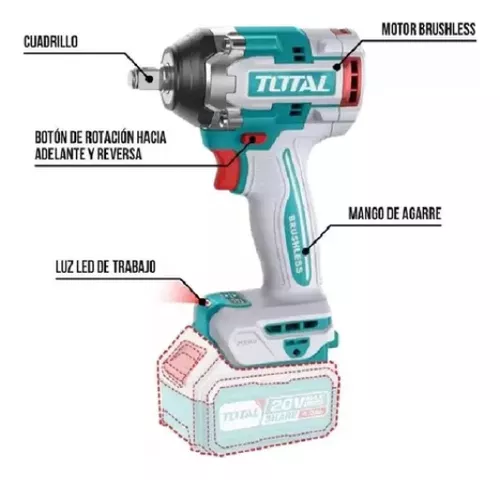LLAVE DE IMPACTO INALAMBRICO 20 VOL ENCASTRE 1/2 – BRUSHLESS CON VEL/VAR – TORQUE 500 NM – 3 BOCALLAVES 21; 22; 24 (NO INCLUYE CARGADOR Y BATERIA)