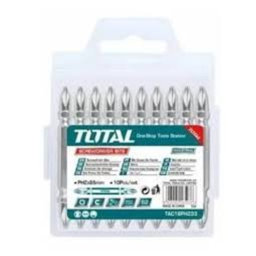 PUNTAS DE ATORNILLADOR X 10 UNIDADES – DOBLE PUNTA – PH2 65 MM TOTAL HERRAMIENTAS