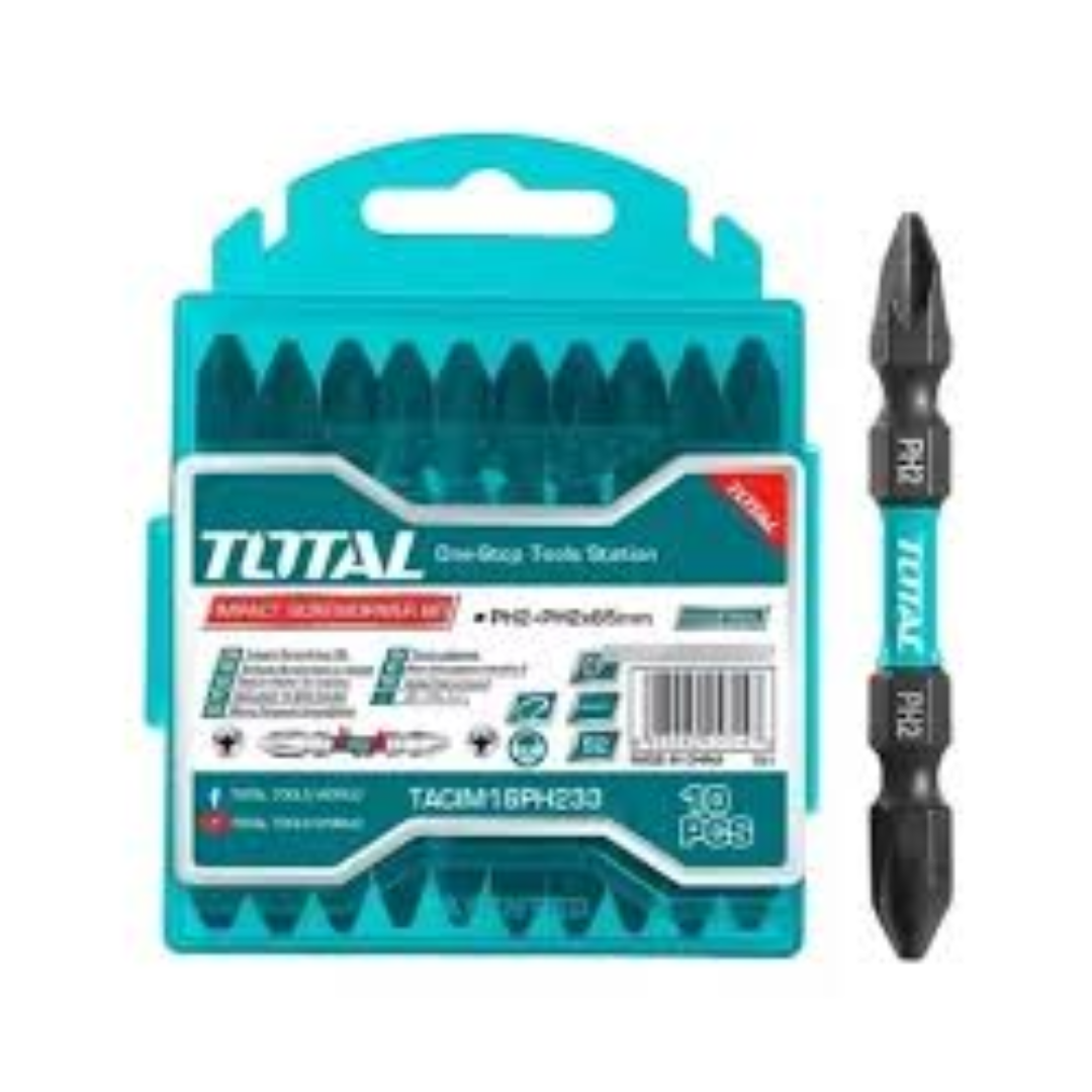PUNTAS DE IMPACTO X 10 UNIDADES – PH2 65 MM – DOBLE PUNTA INDUSTRIAL PMT, TOTAL HERRAMIENTAS