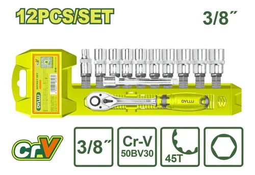 SET DE LLAVE CRIQUE Y BOCALLAVES 3/8″ 12 PCS DYLLU DTST3212