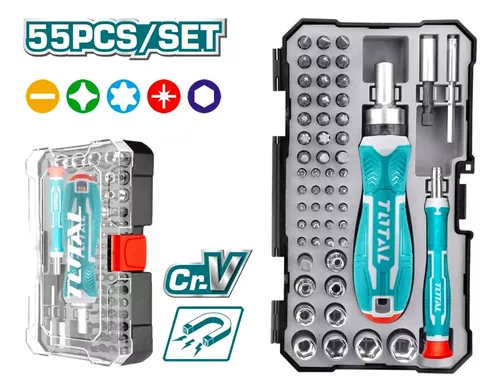 SET DESTORNILLADOR CON CRIQUE – 55 PUNTAS Y BOCALLAVES CON ESTUCHE PLASTICO PARA GUARDADO