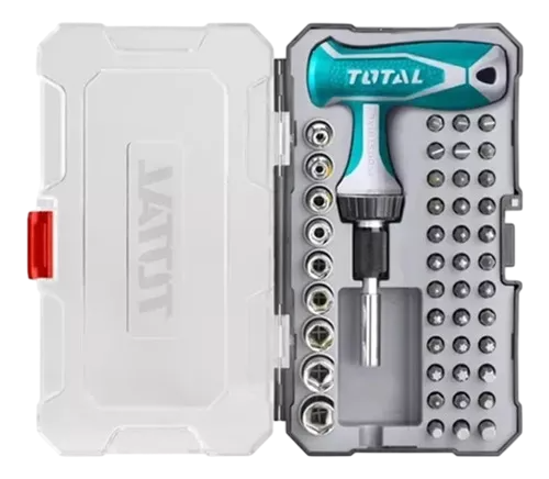 SET LLAVE CON CRIQUE “T” CON EXTENSION – 47 PUNTAS Y BOCALLAVES CON ESTUCHE PLASTICO
