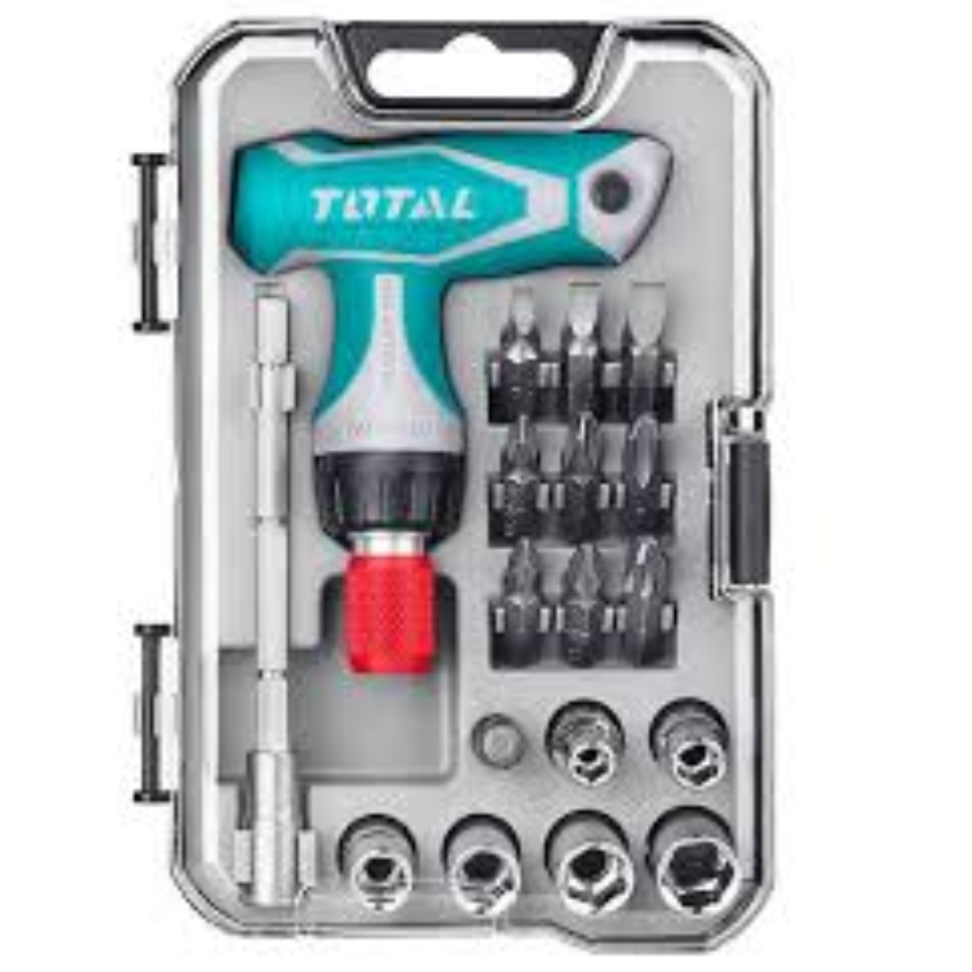 SET LLAVE “T” CON CRIQUE – 24 PUNTAS Y BOCALLAVES -SET DE MOTO TOTAL HERRAMIENTAS